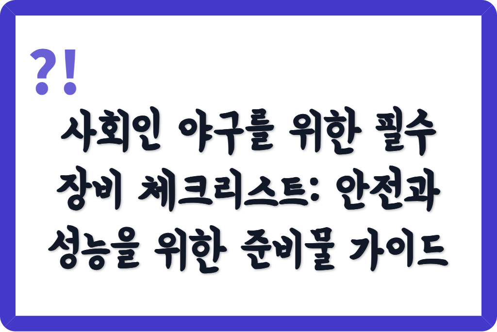 사회인 야구를 위한 장비 준비는 단순한 쇼핑이 아니라, 안전하고 즐거운 야구 생활을 위한 첫걸음이자 투자입니다. 오늘 소개해 드린 체크리스트를 바탕으로 자신에게 필요한 장비들을 꼼꼼하게 준비하여, 부상 걱정 없이 마음껏 그라운드를 누비며 야구의 즐거움을 만끽하시길 바랍니다. 안전한 야구가 가장 즐거운 야구입니다!